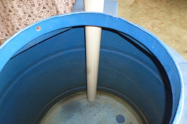 Pour mélanger le substrat, il est possible d'équiper l'installation d'un système de drainage fonctionnant sur le principe du barbotage. Pour ce faire, fixez verticalement les tuyaux en plastique à l'intérieur de la structure de sorte que leur bord supérieur soit plus élevé que la couche de substrat. Faites-y beaucoup de trous. Le gaz sous pression va baisser et monter, les bulles de gaz vont mélanger la biomasse dans le réservoir.