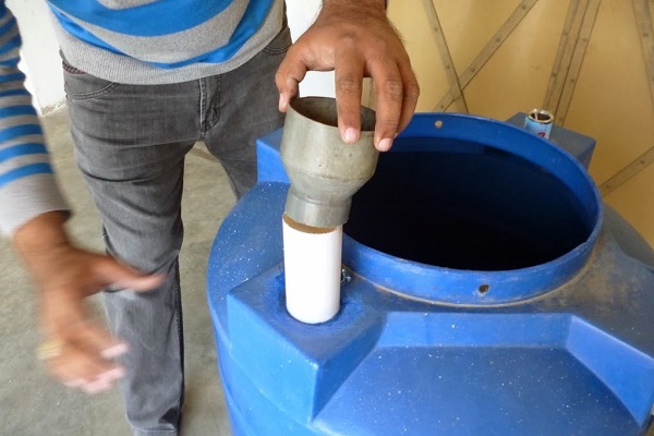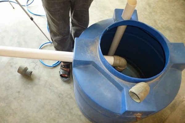 Le gaz obtenu à la suite de la fermentation n'est pas adapté à l'utilisation, car il contient une grande quantité de vapeur d'eau et, sous cette forme, il ne brûlera pas. Pour le nettoyer des fractions d'eau, le gaz passe à travers un joint d'eau.Pour ce faire, un tuyau est retiré du réservoir de gaz, à travers lequel le biogaz pénètre dans le réservoir avec de l'eau, et de là, il est fourni aux consommateurs via un tuyau en plastique ou en métal.