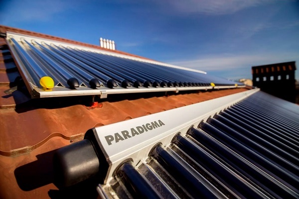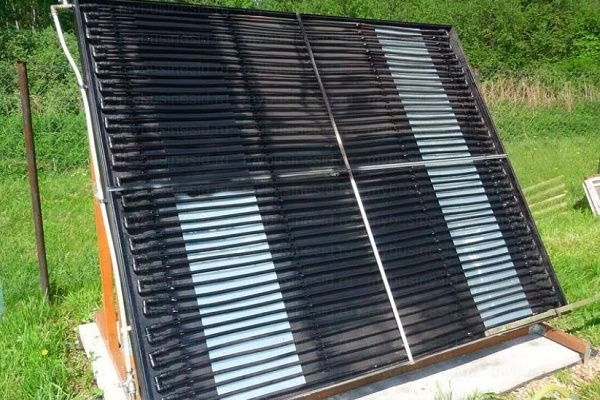 Habituellement, la partie extérieure du système est peinte en noir pour augmenter sa capacité à absorber la chaleur. La base avec les tuyaux est fixe de sorte qu'il est possible de changer l'angle de son inclinaison.