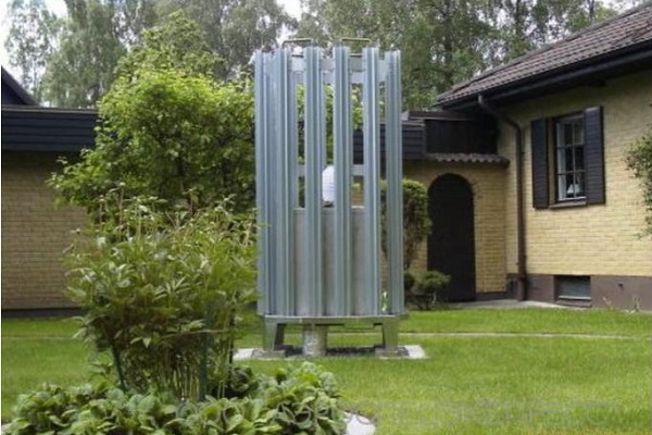 Il s'agit d'une variante plus moderne et productive de la douche d'été.Même dans le chalet le plus modeste, il y a un baril d'eau, qui est chauffé pendant la journée à un niveau très décent.