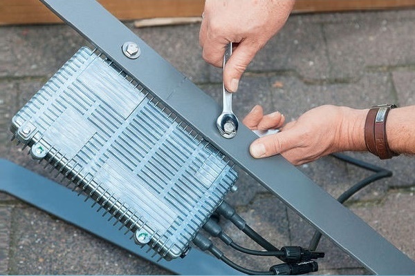 La conception avec des panneaux solaires est plutôt lourde, donc le plus souvent, elle est placée directement sur le toit de la maison. Le boîtier est monté sur un support afin que le panneau avec les photocellules puisse être tourné, cela vous permettra de surveiller le mouvement du soleil et de capturer plus de rayons UV en fonction de la période de l'année.