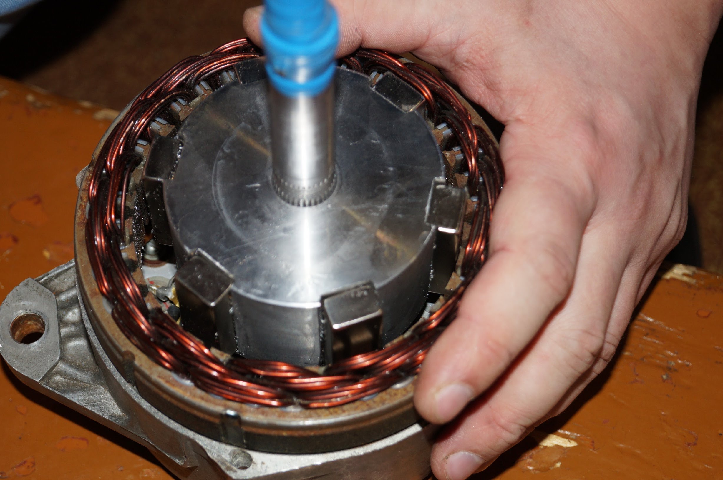 La modification consiste uniquement à rembobiner le fil du stator, ainsi qu'à fabriquer un rotor avec des aimants en néodyme. Vous devez d'abord percer les trous nécessaires pour fixer les aimants dans les pôles du rotor.