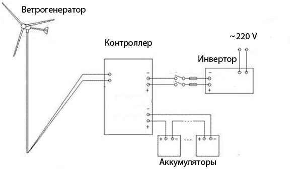 Avec ce générateur, lames de rotation et le mât sont considérés comme les parties principales de l'éolienne, et tout le reste est des composants supplémentaires qui assurent un fonctionnement fiable et autonome du système dans son ensemble