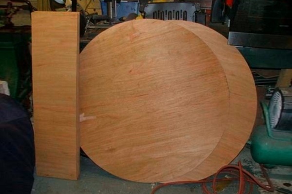 Mais si le métal n'a pas été trouvé dans les matériaux à portée de main, il est possible de couper des cercles à partir de contreplaqué étanche, bien que la résistance et la durabilité du bois même traité ne puissent pas être comparées à l'acier. Ensuite, sur l'un des disques, vous devez couper un trou rond pour installer le générateur.