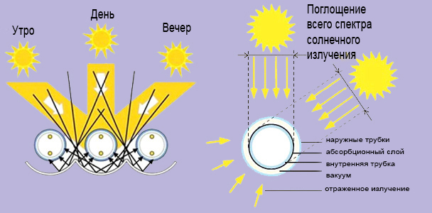 Un avantage considérable des capteurs solaires tubulaires est la forme cylindrique des principaux éléments, grâce à laquelle le rayonnement solaire est capté toute la journée sans l'utilisation de systèmes de suivi coûteux pour le mouvement du soleil.