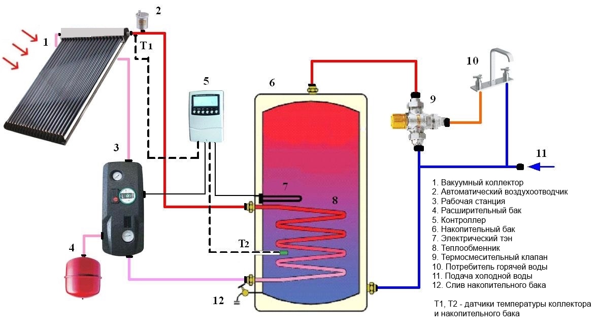 Si vous voulez vraiment réaliser le fonctionnement le plus efficace du capteur solaire, le schéma de connexion est compliqué.