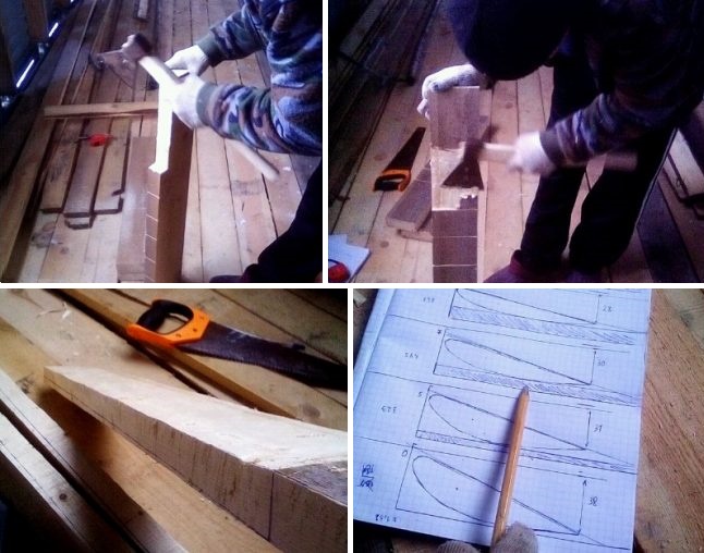 Il est nécessaire de choisir une forme appropriée, mais tenez compte du fait que la lame en bois ne sera pas une plaque mince, comme l'aluminium ou le plastique, mais une structure tridimensionnelle. Par conséquent, en donnant à la pièce un peu de forme, vous devez comprendre les principes de l'aérodynamique et imaginer la forme de la lame dans les trois dimensions.
