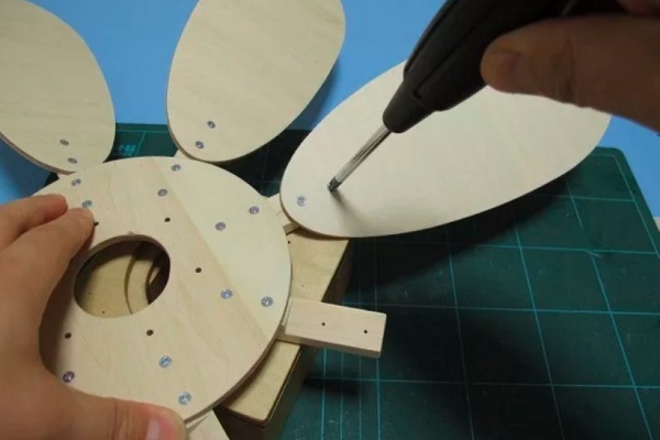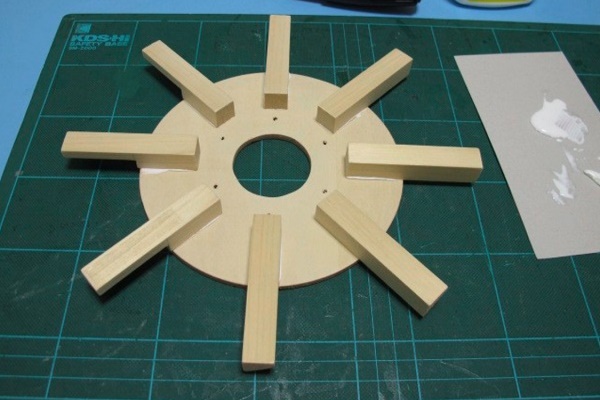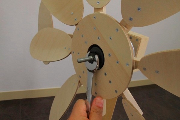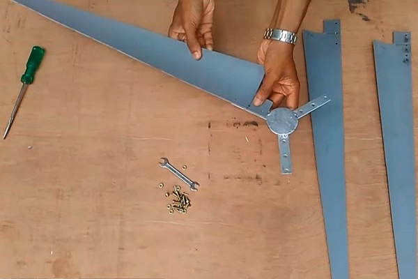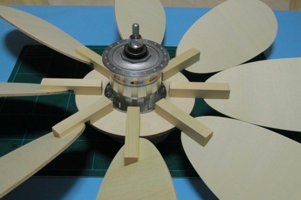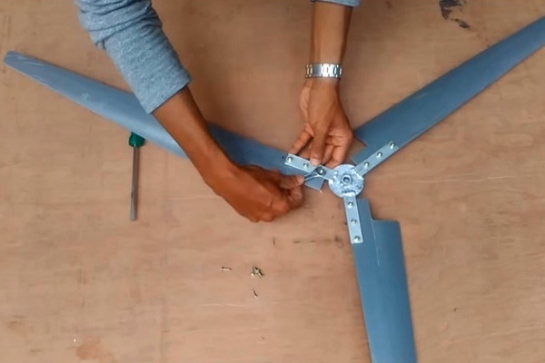 Toutes les étapes préparatoires sont terminées, maintenant les pales doivent être fixées à la pièce en rotation après le vent: