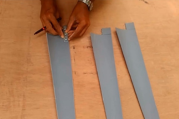 Il est très difficile de faire une ébauche par vous-même, vous devez avoir un modèle prêt à l'emploi d'une lame en bois ou autre matériau devant vos yeux, et alors seulement une matrice pour la pièce est découpée à partir de ce modèle. De telles matrices en ont besoin d'au moins 2. Mais, après avoir réussi une fois, elles peuvent être utilisées plusieurs fois et ainsi construire plus d'un moulin à vent.