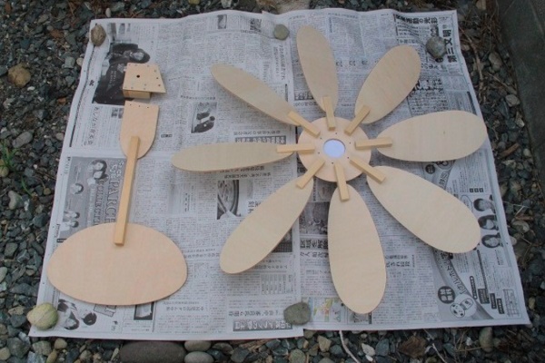 La sélection de photographies suivante présentera les étapes de fabrication d'un moulin à vent avec des lames découpées en contreplaqué: