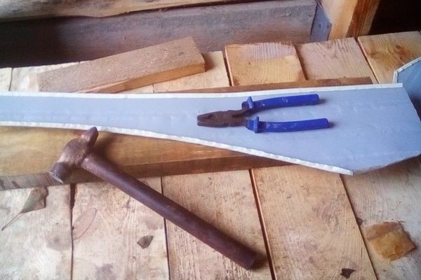 Au lieu d'aluminium coûteux, vous pouvez utiliser des restes de tôle de toiture ou des morceaux de carton ondulé restant après l'installation: