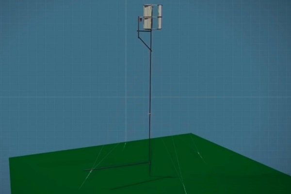 Pour le mât, ils prennent un tuyau métallique solide de 4 à 5 mètres de long et vissent le générateur déjà assemblé à la vis. Ensuite, ils fixent le cadre avec des lames en plastique au générateur et installent la structure du mât sur un site préparé avec une fondation renforcée à trois points.