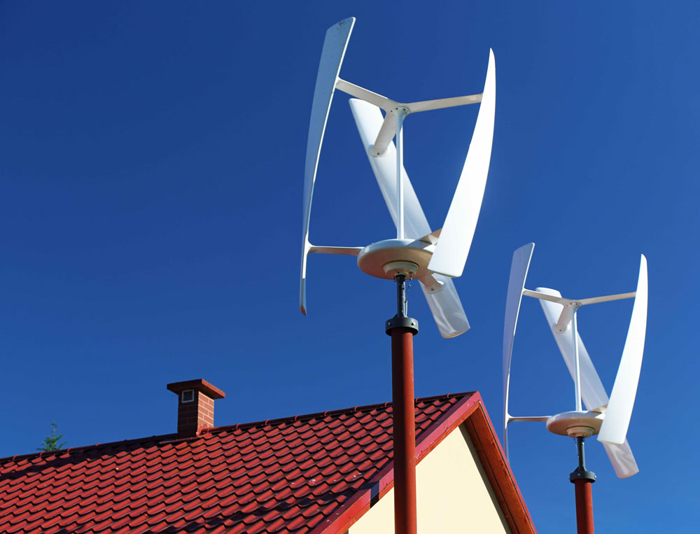 Lorsque l'immobilier résidentiel (maison, chalet, appartement, etc.) est situé en ville ou en dehors de la ville, mais dans des lieux de développement dense, le complexe éolien est mis sur le toit.