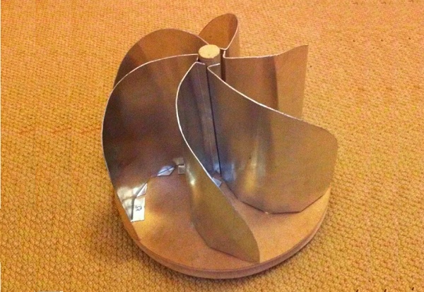 Tous les détails de ce modèle d'éolienne Savonius à l'exception d'un générateur à 3200 tr / min et 24 V sont fabriqués à la main.
