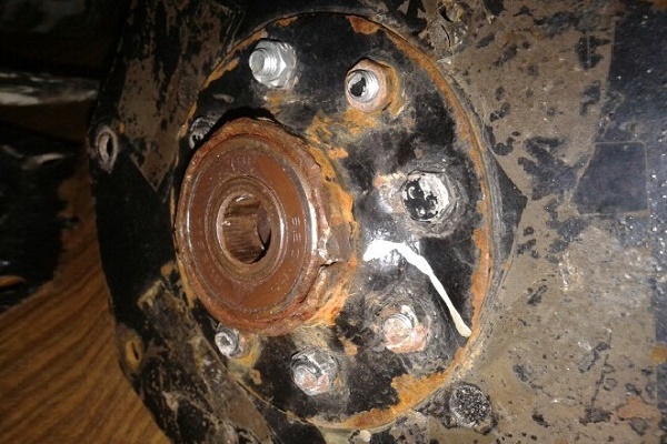 Le diamètre du filetage du boulon doit être légèrement inférieur au diamètre intérieur des bagues de roulement, enfoncées dans le tube de mât. Au centre du boulon, le long de son axe, un trou de 7-10 mm est percé. Un câble électrique du générateur passera par ce trou et descendra le tuyau jusqu'au point de connexion.