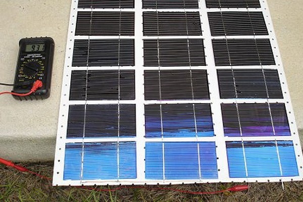 Habituellement fait maison batterie solaire, construit à partir de photocellules du groupe B, donne une lecture de 5-10 A, ce qui est 10-20% inférieur à celui des panneaux solaires industriels.