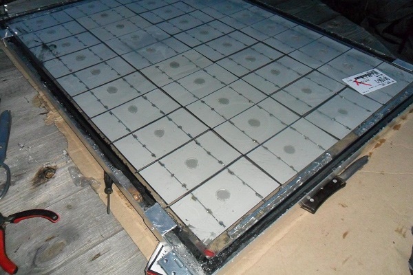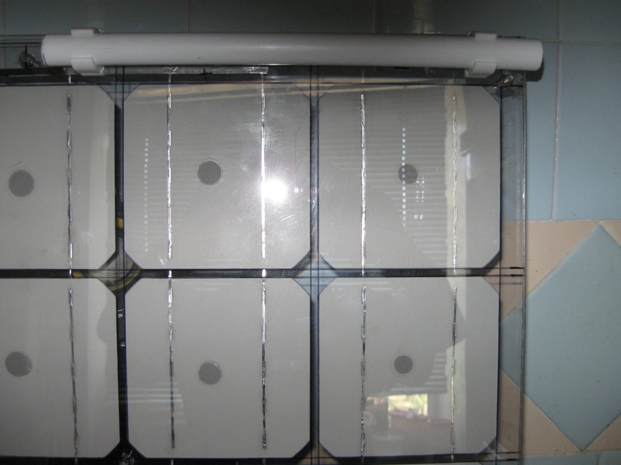 Le cadre de la batterie solaire est prêt et vous pouvez passer à la partie la plus critique - l'installation de cellules solaires. Avant l'installation, il est nécessaire de nettoyer le plexiglas de la poussière et de dégraisser avec un liquide contenant de l'alcool.
