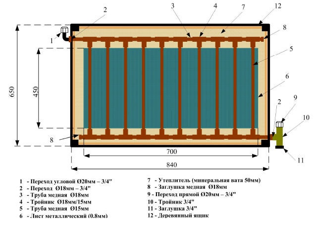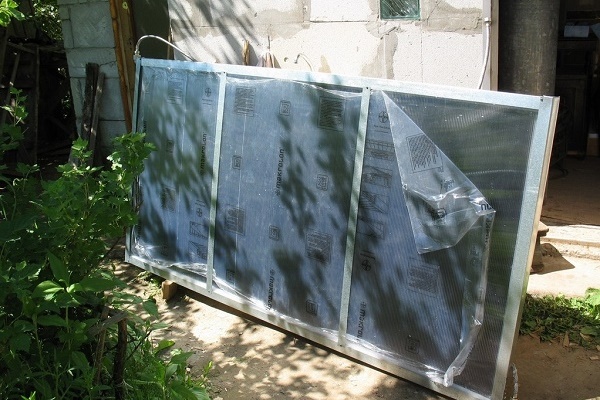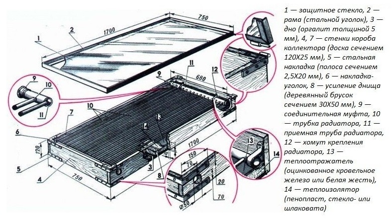 Dans les dessins industriels de tels systèmes solaires, un verre solaire spécial est utilisé. Un tel verre se caractérise par une faible teneur en fer, ce qui réduit les pertes de chaleur.