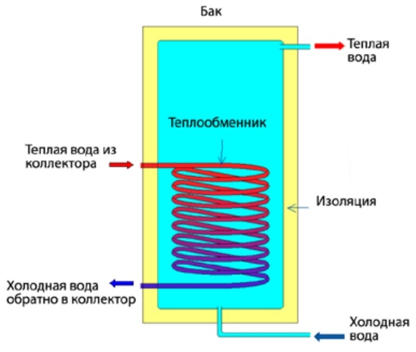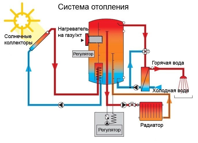 Malgré le grand nombre de variétés, elles fonctionnent de la même manière. Tout système solaire représente un circuit avec un agencement séquentiel d'appareils qui fournissent de l'énergie thermique et la transmettent au consommateur.