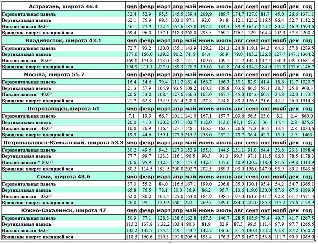 La valeur de l'ensoleillement à différents points du globe varie sur une assez large plage. Pour déterminer les indicateurs moyens de cette valeur, il existe des tableaux spéciaux. Ils affichent l'insolation solaire moyenne pour une région donnée.