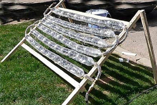 Une solution économique intéressante est un absorbeur de système solaire à partir d'un tuyau flexible en polymère. Des raccords appropriés sont utilisés pour se connecter aux dispositifs d'entrée et de sortie.La sélection de moyens improvisés à partir desquels l'échangeur de chaleur du capteur solaire peut être fait est assez large. Il peut s'agir de l'échangeur de chaleur d'un vieux réfrigérateur, de conduites d'eau en polyéthylène, de radiateurs à panneaux en acier, etc.