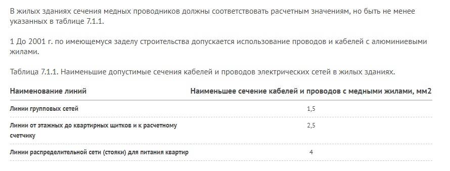 Vous avez raison - pas si simple. Le commentaire de Vladimir est basé sur des informations circulant dans le réseau - ils «oublient» souvent les «règles d'installation électrique» et parlent des sections de câblage d'appartement comme suit: «les fils sont généralement utilisés ...», puis ils parlent de 1,5, 2,5 carrés que Vladimir a mentionnés.