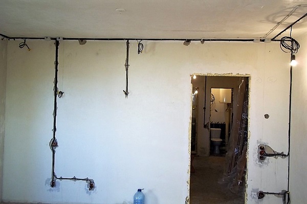 Au même stade, vous devez décider de la méthode de pose des câbles - ouverte ou fermée. Dans les maisons avec des murs en plâtre, la méthode fermée est généralement utilisée, avec du bois - la méthode ouverte.