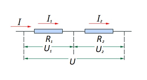 En ce qui concerne une connexion série (une section d'un circuit à deux composants), la formule suivante est utilisée: