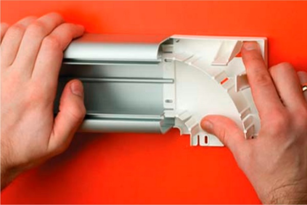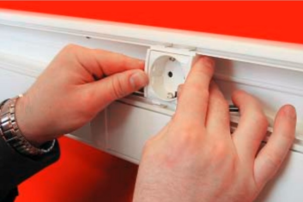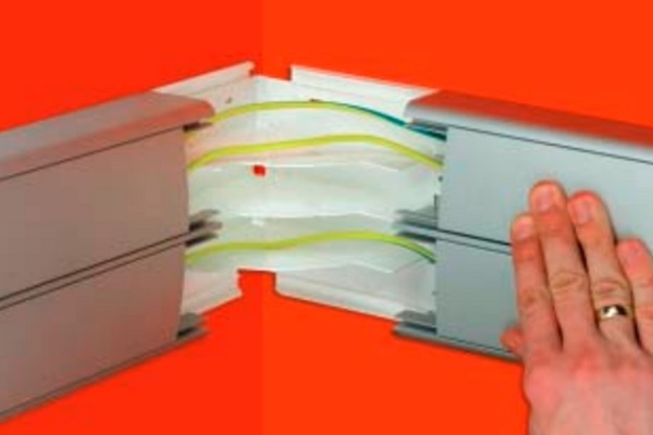 Les canaux de plinthe sont utilisés comme plinthes et sont montés sur tout le périmètre de la pièce. Pour dériver le canal du sol ou du mur de la plinthe, des adaptateurs spéciaux sont utilisés qui peuvent simultanément servir de boîte de jonction.