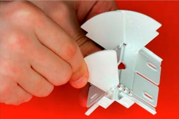 L'ensemble complet du système comprend des boîtes de 2 mètres de long et divers accessoires qui servent à connecter les canaux sur des plans droits, aux coins externes et internes, pour les joints en T.