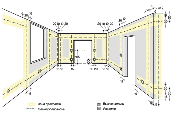 Avant de choisir un outil et de se mettre au travail, il est nécessaire de réaliser un schéma de câblage électrique dans l'appartement ou maison privée tenant compte des normes de construction (les exigences sont réglementées par les normes et règlements de construction 3.05.06-85).