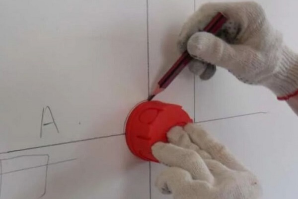 - Ensuite, nous transférons le schéma de câblage aux murs en utilisant un dessin fait à l'avance, un marqueur et un niveau de bâtiment.