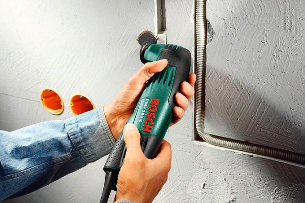 - Nous vérifions la zone marquée avec un indicateur ou un détecteur de métaux pour la présence de vieux câbles - s'il y en a un, il sera nécessaire de démonter ou de mettre en retrait au moins 10 cm. Idéalement, l'appartement devrait être complètement hors tension et le fil devrait être tiré vers les voisins, car si vous tombez accidentellement sur un câble qui a été manqué lors de l'inspection une tension sous tension peut provoquer des blessures graves.