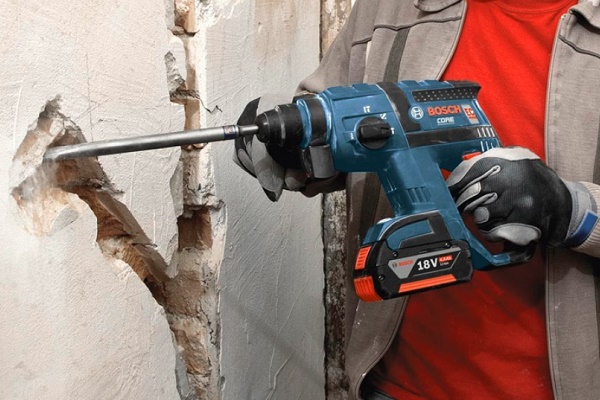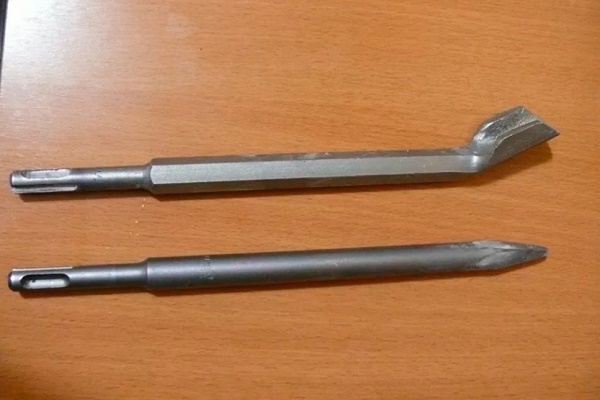 - Perceuse à percussion ou marteau perforateur avec buses interchangeables. Les deux appareils fonctionnent selon le même principe: d'abord, les trous sont percés avec un foret court à des intervalles de 1 à 1,5 cm. Ensuite, la buse se transforme en «burin» ou «lame» pointu, est installée à un angle de 45 degrés par rapport au mur, l'appareil passe en «sans perçage »et nettoie la rainure du matériau restant. Cette méthode est bonne pour sa vitesse, mais pas pour sa qualité - la rainure est toujours bâclée, avec des bords déchirés, des fissures et des éclats.