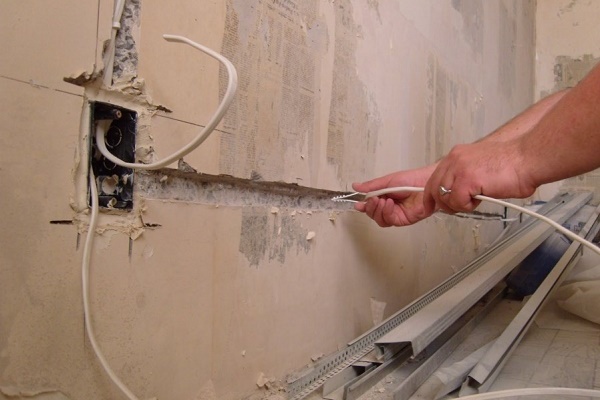 Les travaux de conduits cachés sont généralement effectués avant le plâtrage, de sorte qu'après le câblage des communications, toute la surface du mur est nivelée pour appliquer la couche de finition. Mais si le câblage est remplacé après la finition grossière des murs, vous devez procéder avec précaution afin que le stroboscope ne transforme pas la réparation ponctuelle en une réparation majeure.