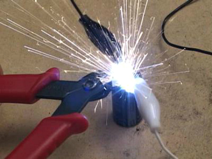 Il existe également une méthode pour déterminer les performances d'un condensateur, comme un test d'étincelle. En même temps, il est chargé à la valeur de travail de la capacité, puis la sortie est court-circuitée avec un tournevis métallique ayant une poignée isolée. La performance est jugée par la force de la décharge.