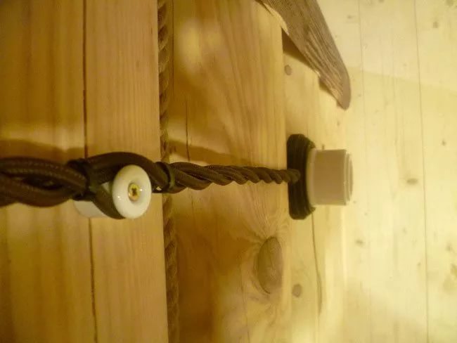 Ceux qui veulent se débarrasser des câbles utilisent un câblage ouvert sur les isolateurs. Selon les normes PUE, il est permis de placer des fils isolés sous forme ouverte à une distance de 10 mm ou plus d'une surface en bois.