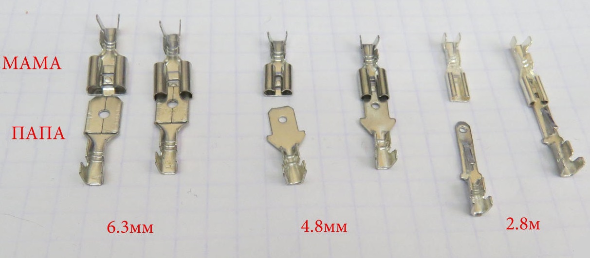 Il existe deux types de produits de ce type: isolés et non isolés. L'isolant est généralement coloré en différentes couleurs (rouge, bleu, jaune) en fonction de la puissance nominale du bornier. Les produits sont utilisés par paires dans le bundle «père-mère».