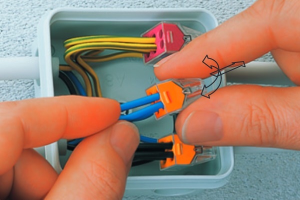 Juste assez dénuder une partie du fil (10-15 mm) et avec un petit effort, poussez l'extrémité dénudée dans la borne. Et pour retirer tout aussi rapidement le conducteur, il faut le retirer tout en faisant défiler autour de son axe.
