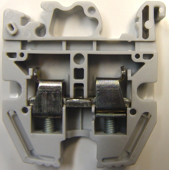 Sur le plateau supérieur d'un tel tube, il y a des trous filetés où les vis de verrouillage sont vissées. Toute la structure est entourée d'une isolation en kapron. Des canaux traversants sont prévus pour accéder aux vis du corps isolant. Il existe deux types de borniers pour connecter les fils - simples et groupés.