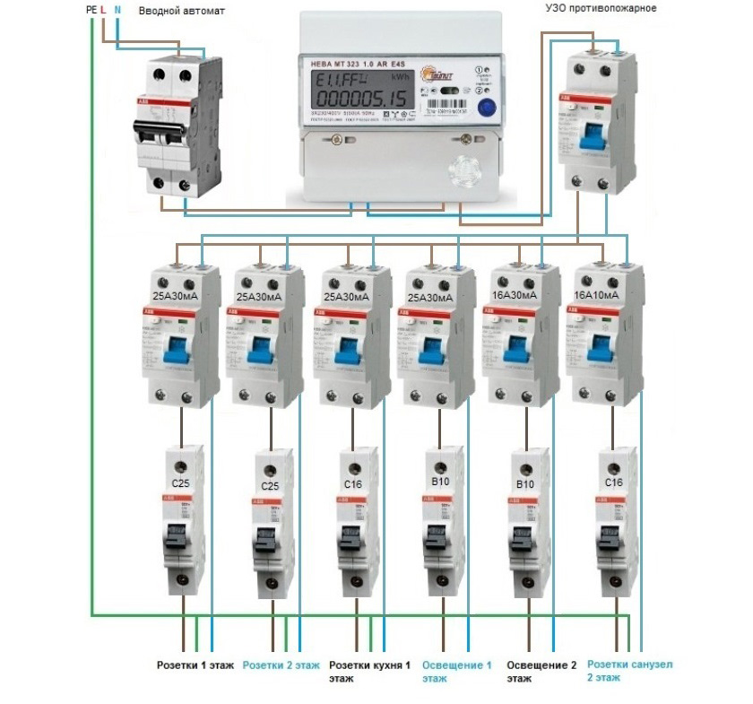 Dans les maisons privées, un élément obligatoire est une machine d'introduction et un câble d'alimentation de celui-ci au bouclier. En utilisant disjoncteur réguler la consommation d'énergie et, si nécessaire, couper toute l'électricité dans la maison.