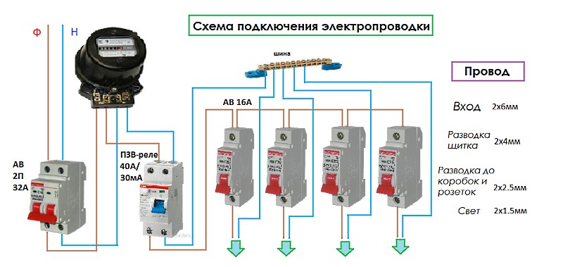 Maquillage schéma de câblage dans une maison privée, vous devez spécifier l'équipement électrique d'entrée et les paramètres de câble à partir du groupe d'entrée.