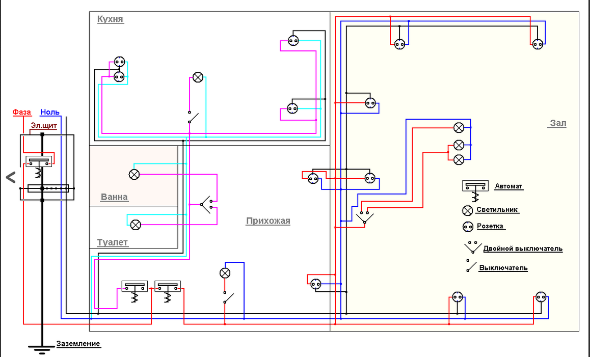 Schéma de câblage dans l'appartement: câblage électrique pour différentes pièces