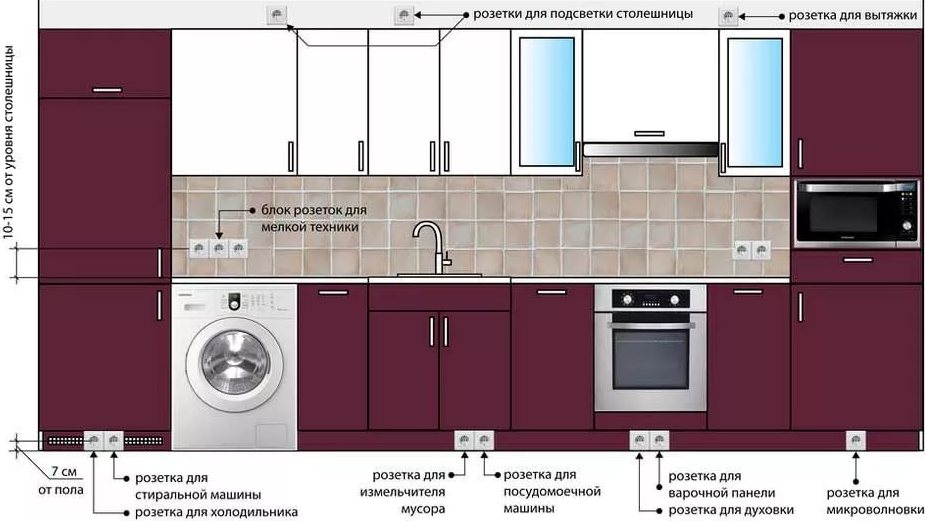 - au moins trois lignes devraient être attribuées à la cuisine - pour les appareils d'éclairage, les équipements puissants et les petits appareils électroménagers;