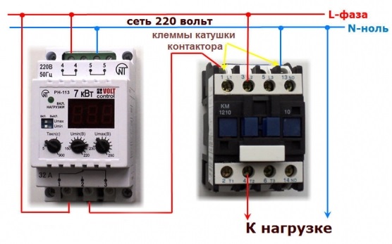 Les relais de surveillance de la tension du réseau sont une excellente protection contre les «ruptures nulles» et les variations brusques de tension. La connexion est facile. Il suffit d'insérer les fils correspondants dans les bornes et de les serrer.Dans presque tous les cas, le schéma standard avec charge directe via l'ILV est utilisé.