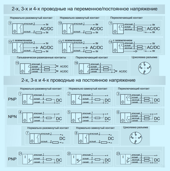 - U est une méthode ultrasonique pour détecter un irritant. Le reste correspond à d'autres lettres latines: I - inductive, C - capacitive, D, R et T - photoélectrique directe, réfléchissante et barrière, respectivement;