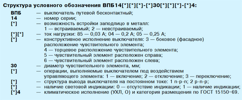 Chaque entreprise engagée dans la production d'appareils de commutation pour la commande d'un circuit électrique possède son propre système de notation. Son décodage est indiqué dans le catalogue, qui contient également la gamme de produits proposés.