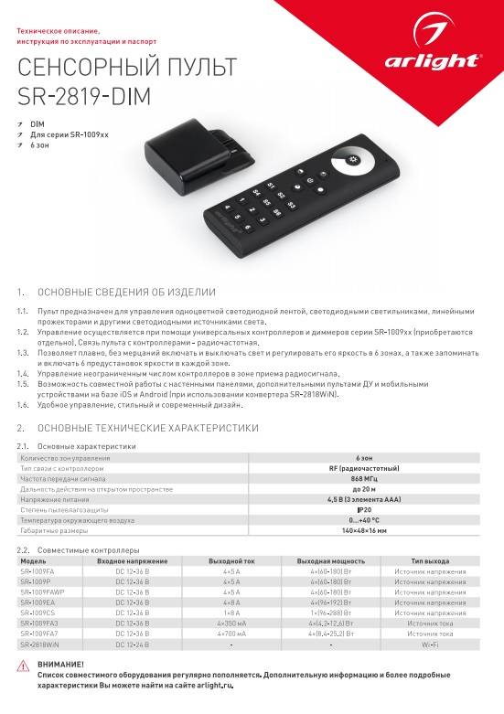 Multicanal utilise des ondes radio - la portée est limitée par la pièce, afin de ne pas interférer avec les voisins. Les plus intelligents se souviennent des paramètres, «comprennent» dans quelle zone ils se trouvent. Sur Internet, vous pouvez voir le passeport de la télécommande SR-2819-DIM pour 6 zones (ci-joint une capture d'écran de la 1ère page pour que vous puissiez naviguer).