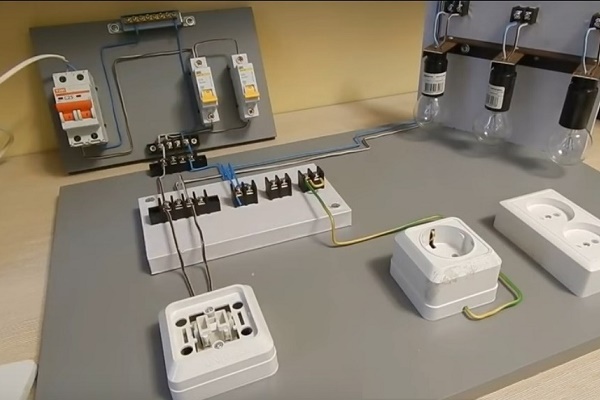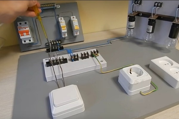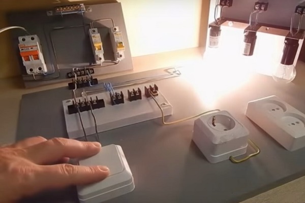 L'essence de la connexion de la lampe via l'interrupteur peut être visualisée sur un support de démonstration: