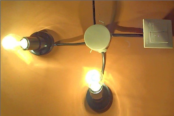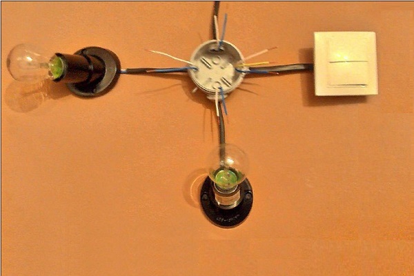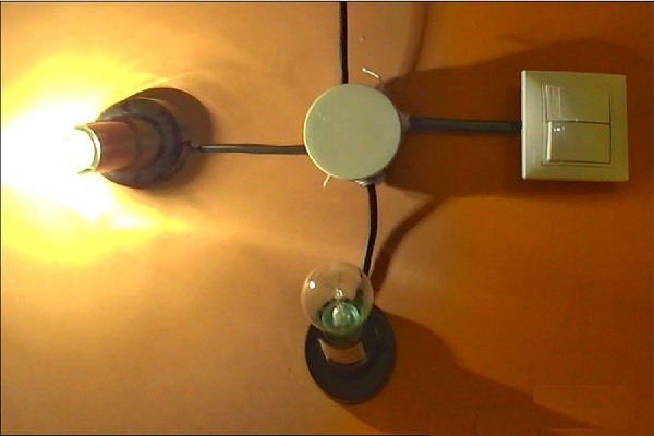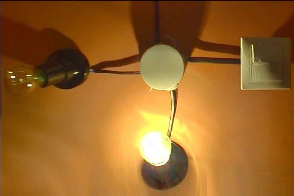 Lorsque l'ancien câblage n'a que deux fils quittant le plafond ou le mur qui alimentent l'appareil électrique léger et que la modification est compliquée, vous pouvez connecter une lampe avec un plus grand nombre de lampes. Mais avec cette connexion, toutes les lumières du dispositif d'éclairage s'allumeront en même temps.